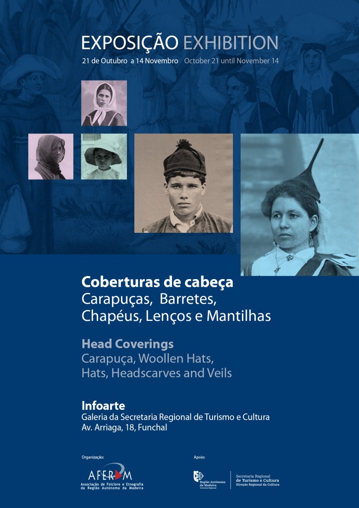 A AFERAM – Associação de Folclore e Etnografia da Região Autónoma da Madeira, no dia 21 de outubro de 2020, quarta-feira, pelas 18 horas, na Galeria do Turismo, Avenida Arriaga, Funchal, vai apresentar o livro e exposição “Coberturas de cabeça: Carapuças, Barretes, Chapéus, Lenços e Mantilhas”, com a presença do Exmo. Sr. Secretário Regional de Turismo e Cultura.