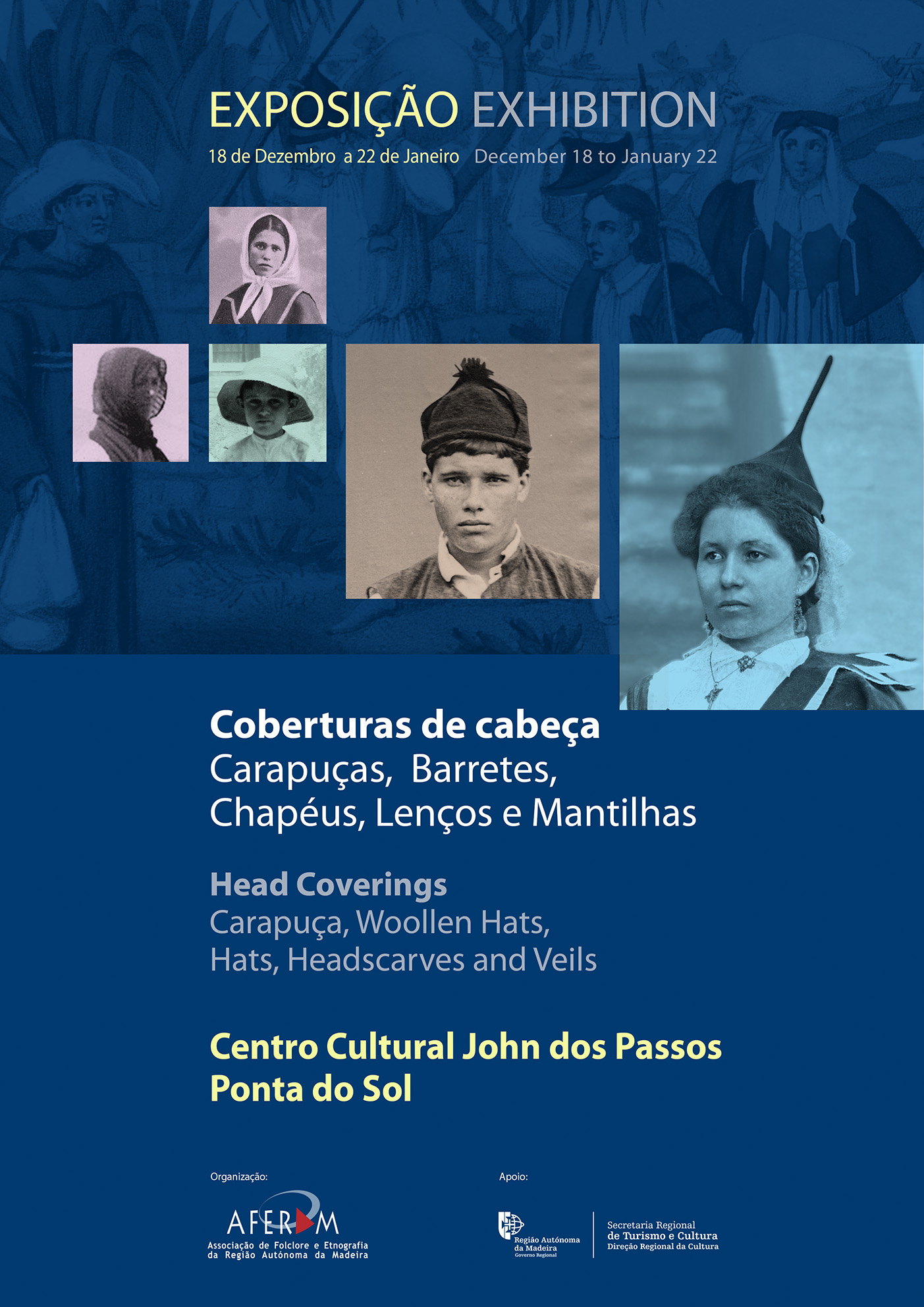 A Aferam vai levar a exposição “Coberturas de Cabeças: carapuças, barretes, chapéus, lenços e mantilhas” ao Centro Cultural John dos Passos, Ponta do Sol. Inauguração amanhã sexta-feira, dia 18 de Dez. às 18 horas. Depois do Funchal e Ilha (Santana), agora na Ponta do Sol.