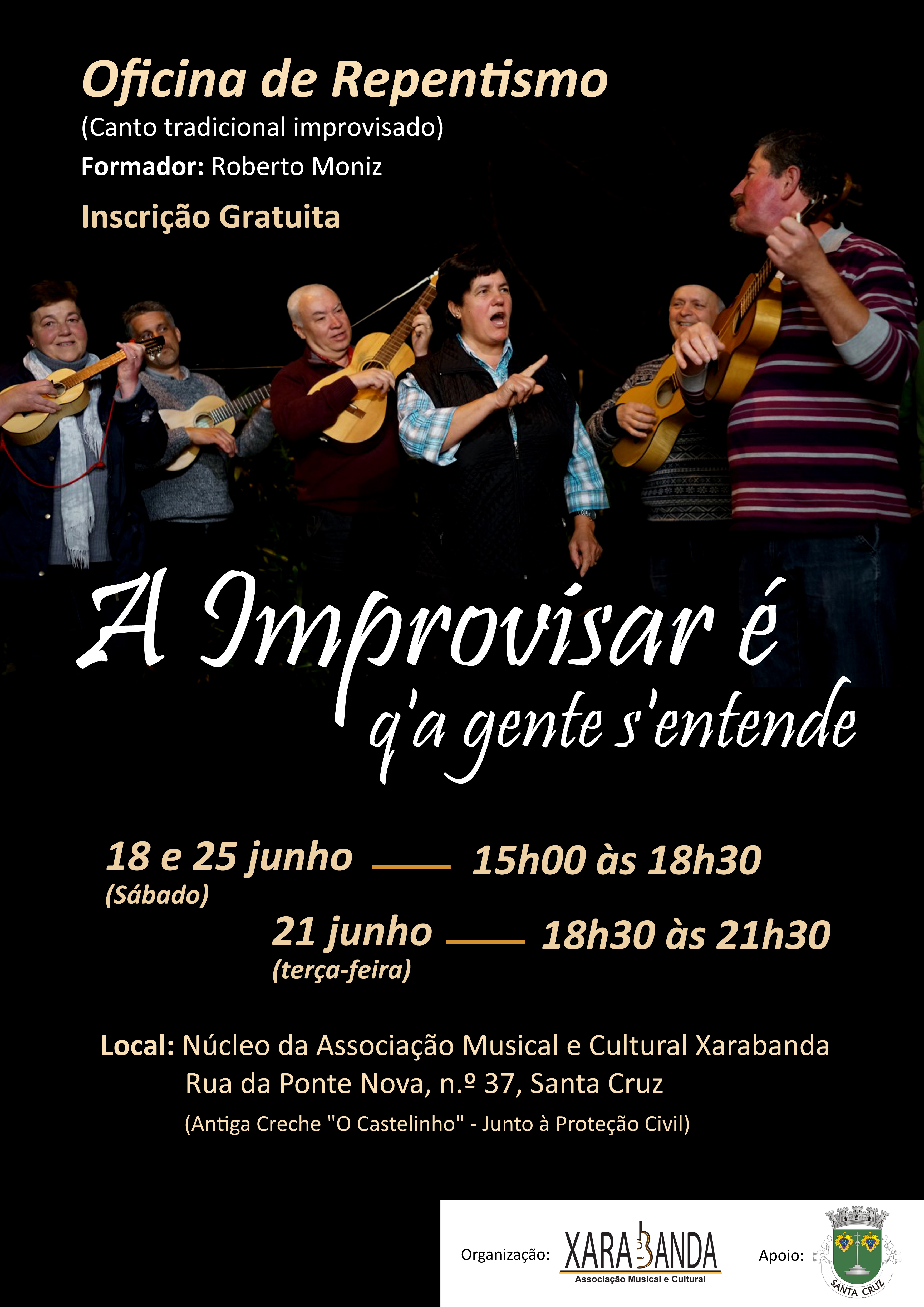 Com esta Oficina de Repentismo (Canto tradicional improvisado), temos como objetivo dar a conhecer as práticas e os contextos do Despique e do Charamba, assim como, dar algumas dicas de como se tornar um improvisador/repentista.