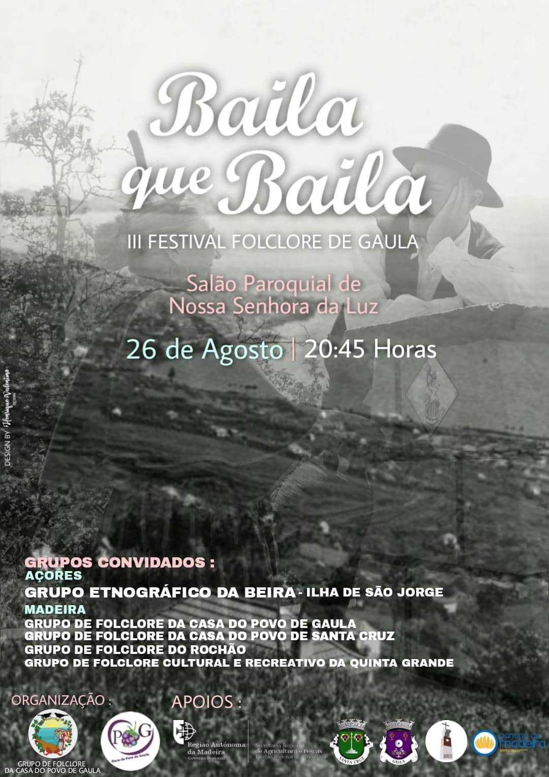14 de Agosto de 202211 de Agosto de 2022 RC III Festival de Folclore de Gaula “Baila que Baile” Festival de Folclore de Gaula, que se realiza no dia 26 de agosto, pelas 20h45, organizado pelo Grupo de Folclore da Casa do Povo de Gaula, volta este ano ao Salão Paroquial Nossa Senhora da Luz, no centro da freguesia. Partilhar isto: Click to share on X (Abre numa nova janela) X Clique para partilhar no Facebook (Abre numa nova janela) Facebook Carregue aqui para enviar por email a um amigo (Abre numa nova janela) E-mail Mais Carregue aqui para imprimir (Abre numa nova janela) Imprimir Clique para partilhar no Pinterest (Abre numa nova janela) Pinterest Clique para partilhar no WhatsApp (Abre numa nova janela) WhatsApp Gosto Carregando...