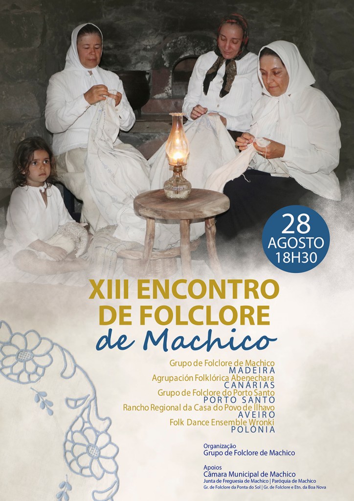O Grupo de Folclore de Machico irá realizar o XIII Encontro de Folclore de Machico no dia 28 de agosto, Domingo, pelas 18.30 horas no Largo da Praça. O espectáculo contará com a presença dos grupos de folclore de MACHICO, Agrupación Folklórica Abenechara – CANÁRIAS, Grupo de Folclore do PORTO SANTO, Rancho Regional da Casa do Povo de Ílhavo – AVEIRO e Folk Dance Ensemble Wronki – POLÓNIA.