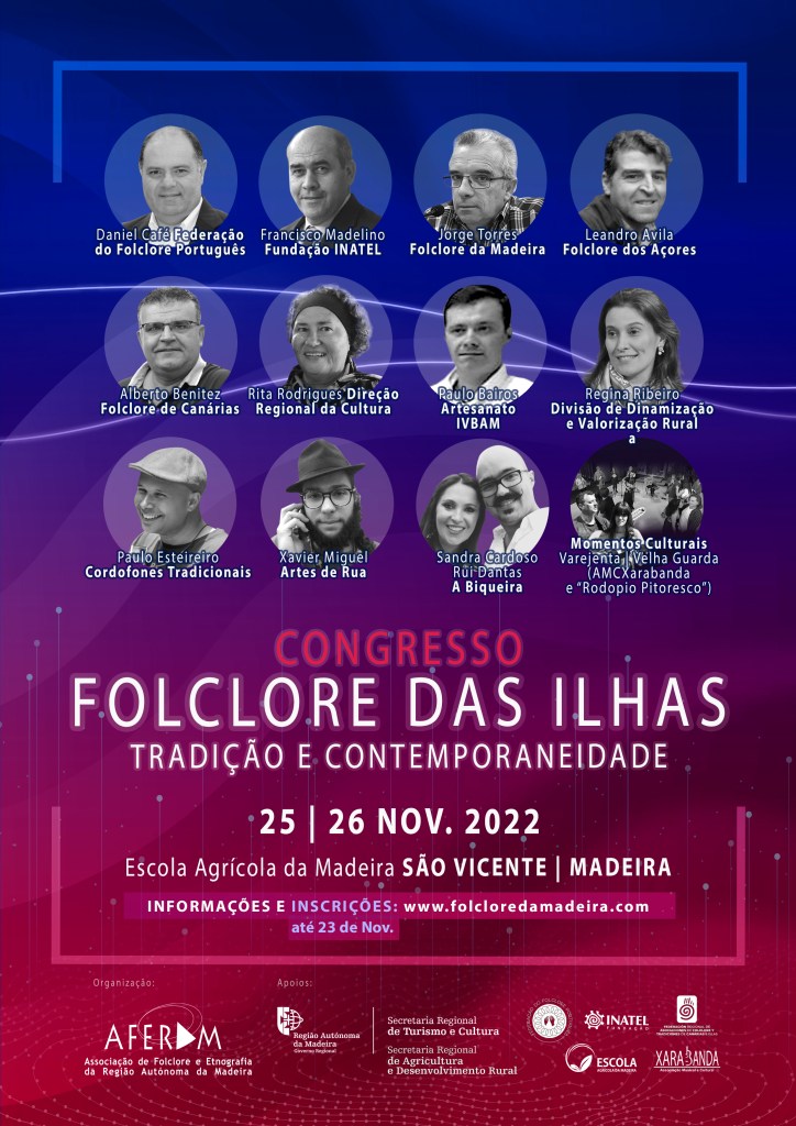 Nos dias 25 e 26 de novembro, vai-se realizar um Congresso de Folclore, promovido pela AFERAM – Associação de Folclore e Etnografia da Madeira, com o tema Folclore das ilhas: Tradição e contemporaneidade, na Escola Agrícola de São Vicente.