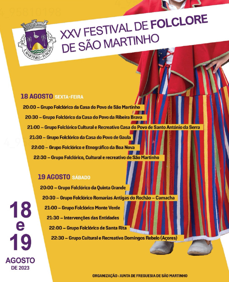 17 de Agosto de 202311 de Agosto de 2023 RC Festival de Folclore de São Martinho 2023 Dias 18 e 19 de agosto a partir das 20 horas, a Junta de Freguesia de São Martinho organiza um festival com a presença de 11 grupos de folclore da região e um grupo do Açores, Grupo Cultural e Recreativo Domingos Rebelo. Partilhar isto: Click to share on X (Abre numa nova janela) X Clique para partilhar no Facebook (Abre numa nova janela) Facebook Carregue aqui para enviar por email a um amigo (Abre numa nova janela) E-mail Mais Carregue aqui para imprimir (Abre numa nova janela) Imprimir Clique para partilhar no Pinterest (Abre numa nova janela) Pinterest Clique para partilhar no WhatsApp (Abre numa nova janela) WhatsApp Gosto Carregando...
