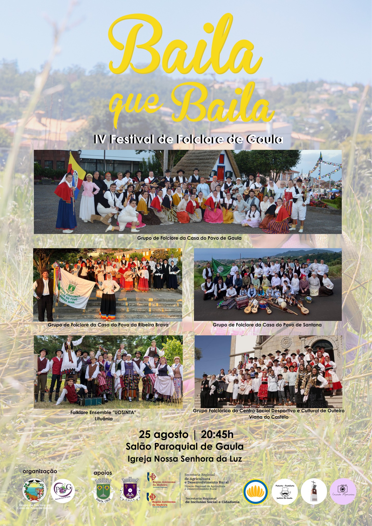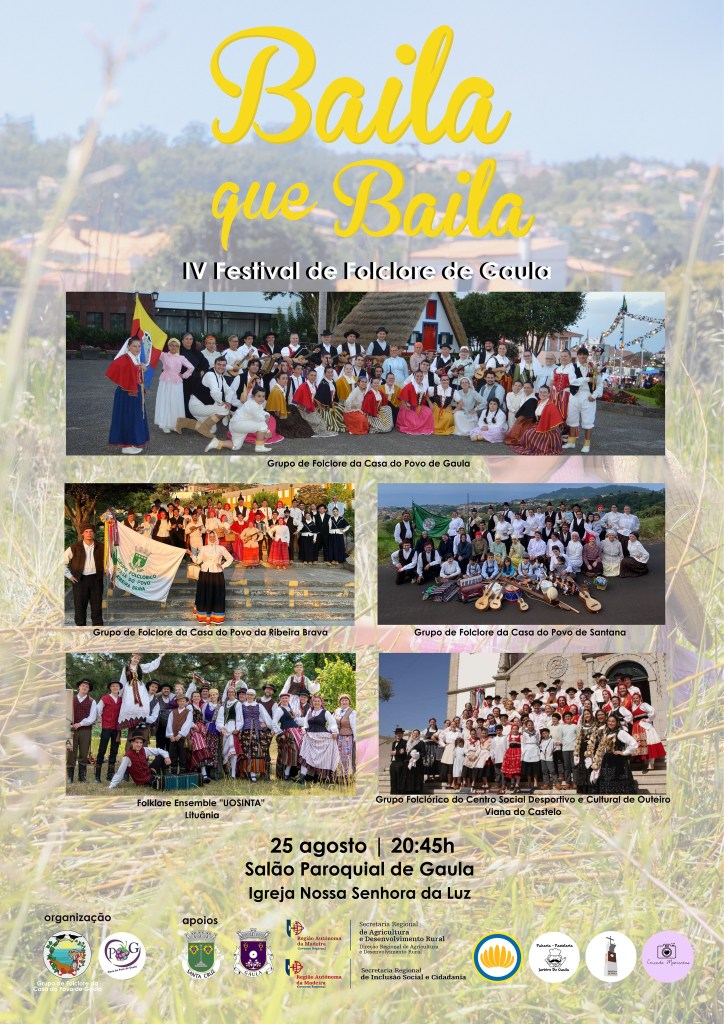 A 25 de agosto pelas 20h45, no Salão paroquial, volta a acontecer o Festival de Folclore de Gaula “Baila que baila”, com a presença do grupo organizador, da Casa do Povo de Gaula, grupo da Casa do Povo de Santana, grupo da Casa do Povo da Ribeira Brava, um grupo de Outeiro, Viana do Castelo e um da Lituânia.